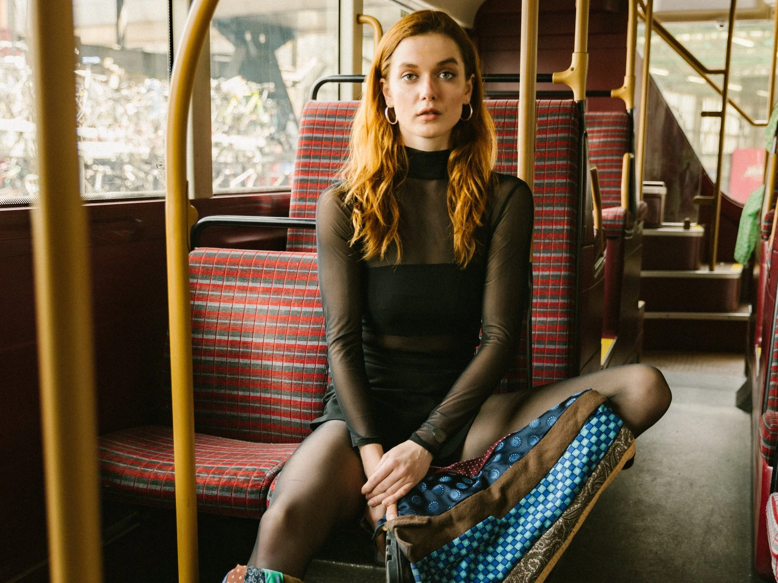 Inspired by London’s vibrant energy, seeing the city as a beehive and its people as bees. This led to designing outfits from ties, symbolising individual stories woven into the city’s fabric.